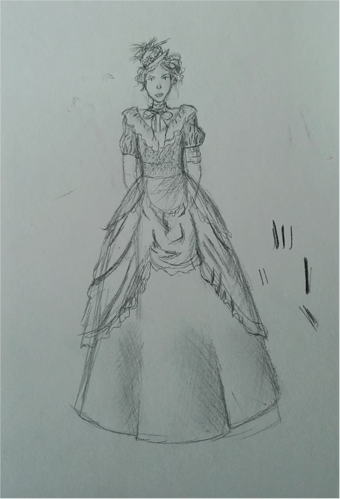 I also sketched out a drawing of some Victorian/Edwardian lady with a fancy dress a little earlier this summer and looking back at it now, I do think this could be Aunt Eugenia! Tell me! Does it not look like her?