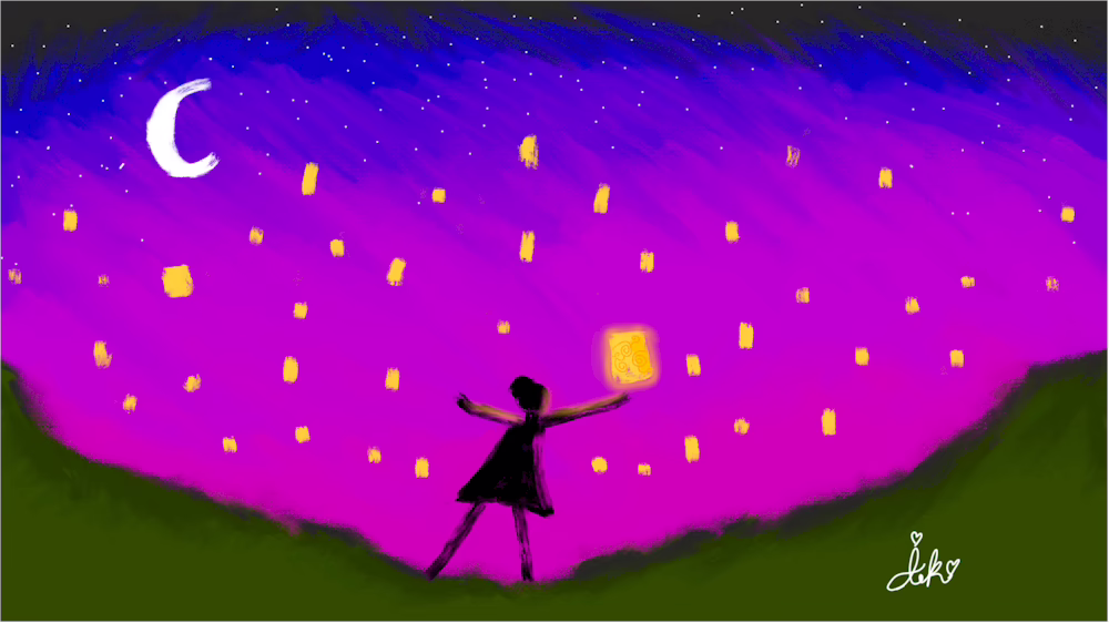 Your art is so colourful and expressive, keep it up girl!! I esp. enjoyed the first one. Is it by change inspired by Jane of Lantern Hill? (Though it seems like your own idea to me, not sure if there are many actual lanterns in that book!)